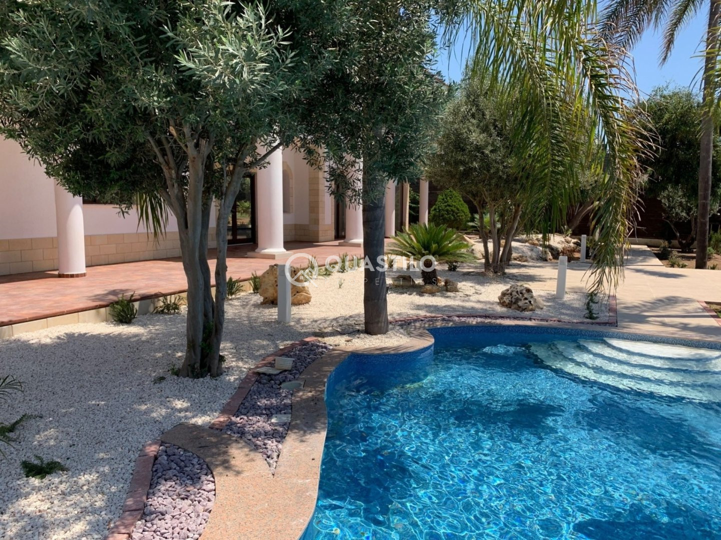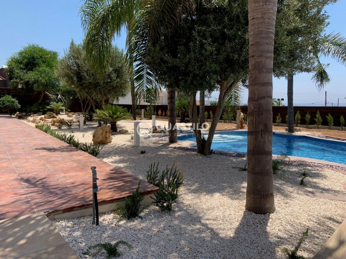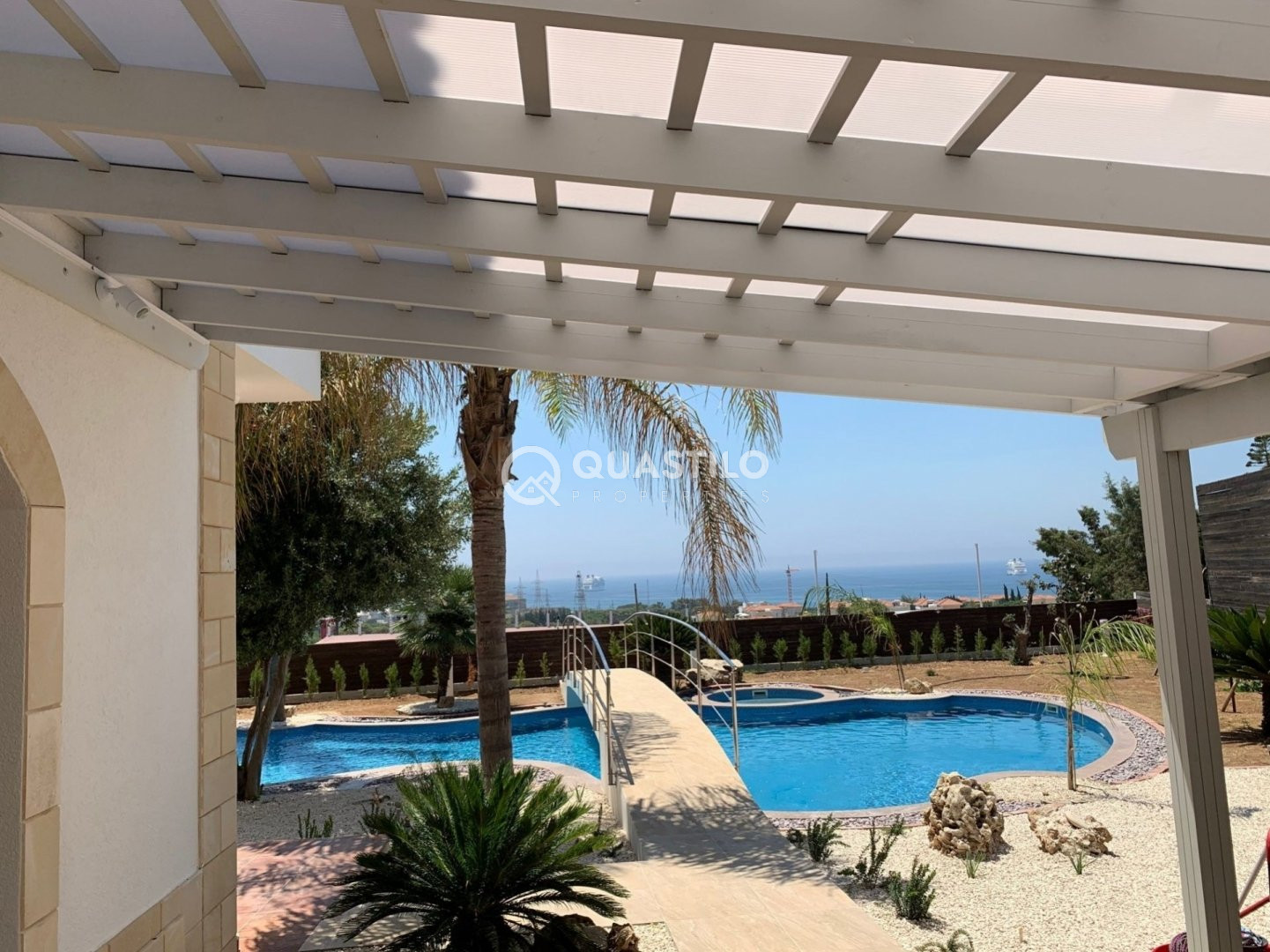 This newly renovated luxury villa in Pyrgos Tourist Area is within walking distance to the beach (600m) and all 5* hotels (Parklane and St. Raphael Marina). Just a minute drive from the highway, with convenient and quick access to the center of Limassol. The plot area is 1,500m2 and the covered area 420m2. The Villa built on two levels. On the ground floor, there is a big living and dining area, separate kitchen with dining area, extra kitchenette, guest toilet and direct access to the gardens and parking area for 8 cars. On the 1st floor, there are 4 bedrooms all with en-suite and all with veranda and magnific sea views. Outside there is a landscaped mature garden and a large swimming pool. Enjoy the privilege of this luxury villa with complete privacy and unparalleled peace.