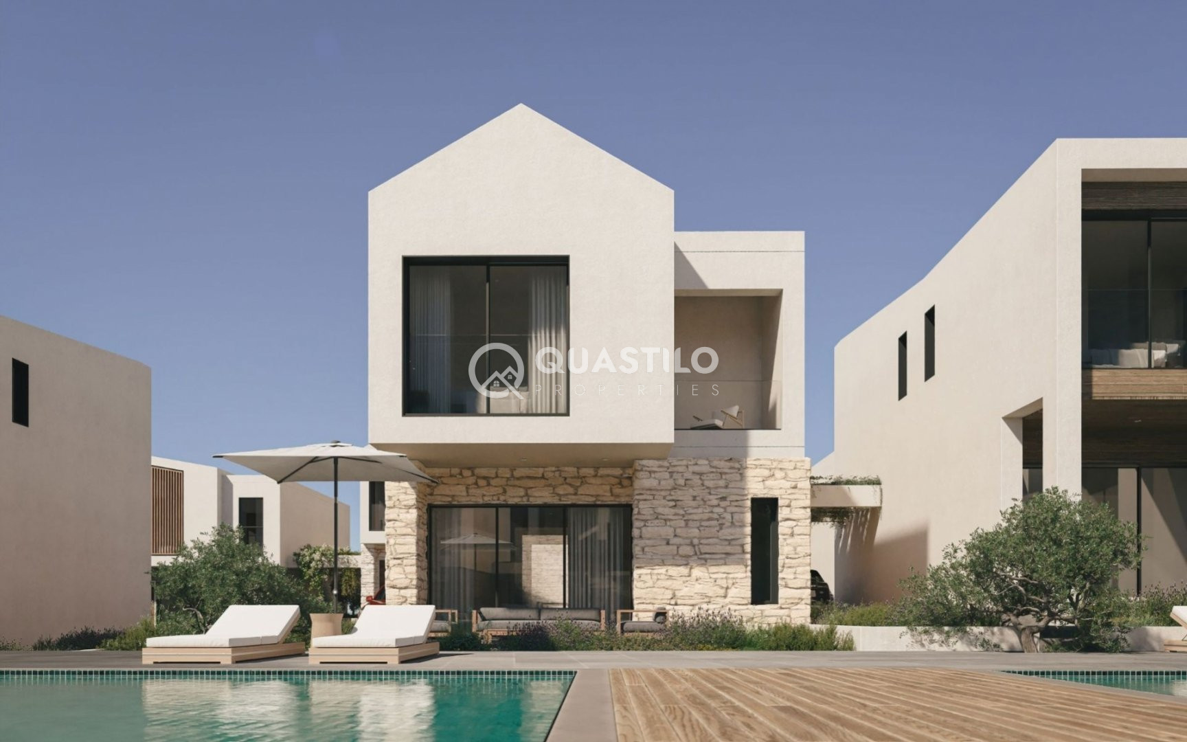 Located in the quaint and charming area of Empa, Paphos. This two storey 48-villa complex is finished in traditional stone and wood cladding, blending into the natural environment with contemporary style. With top-of-the-line specifications and features like private parking spaces, 24-hour security and an onsite restaurant – it is one of the most desirable complexes in the area. Impress your guests as you open your large veranda doors to your own private pool and lounging area or dazzle them with the concierge service, club house and communal pool. You can entertain in style in the BBQ and lounging area, embracing the Mediterranean lifestyle in luxury and comfort. When it’s time to retire for the night, you’ll sleep soundly in one of three bedrooms with two sleek, stylish bathrooms and a guest toilet. You will fall in love with the large and airy spaces of the modern and open floor plan with marble tiles that open onto private verandas to let in plenty of natural light. With amenities close at hand and a luxurious home that provides everything you desire – this project will make you feel like Mediterranean royalty.