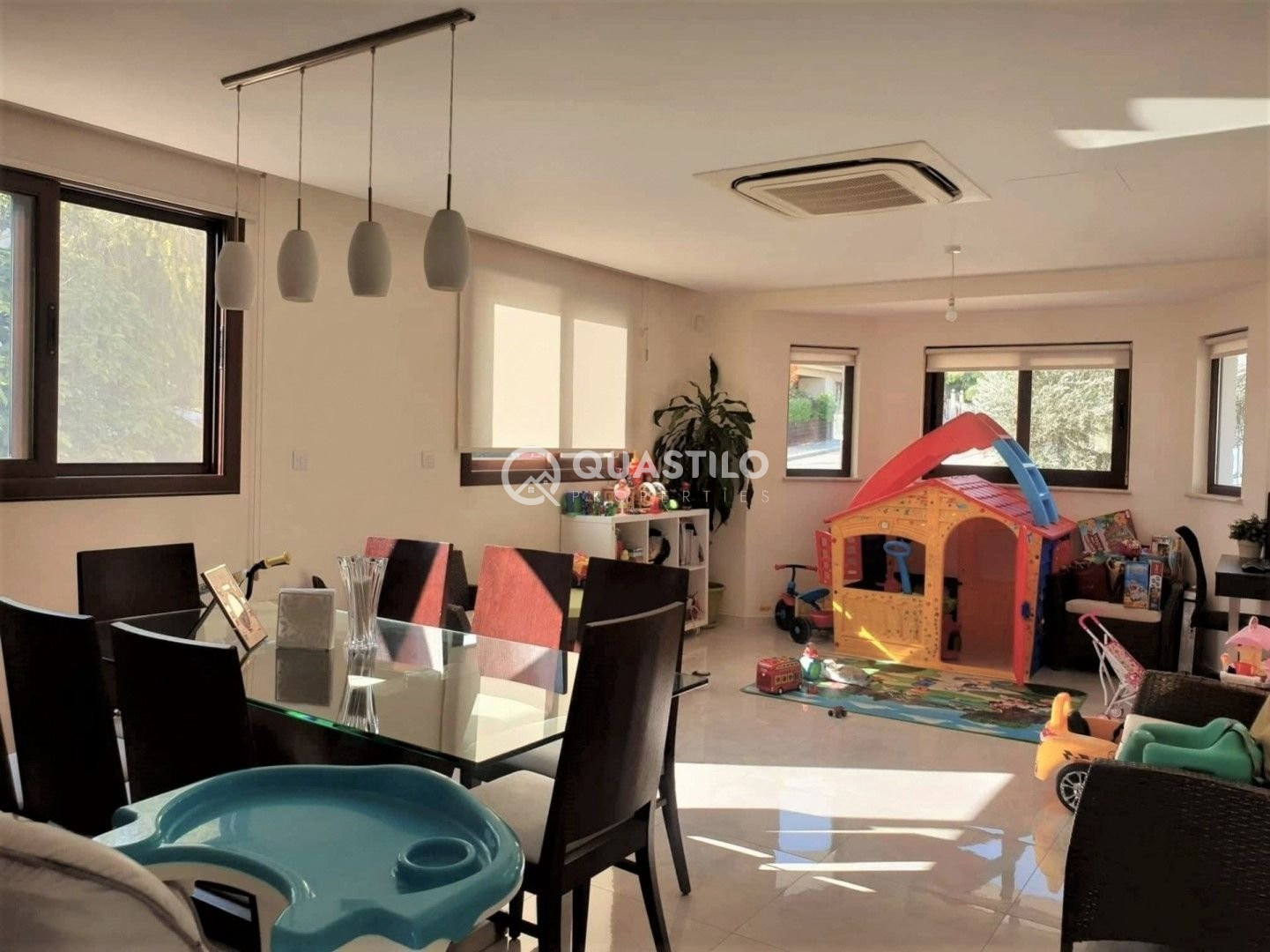 A visually stunning property that reflects the top-end of modern, diachronic lifestyle. It has been carefully designed to provide all comforts. Ideally located in one of the best areas of Agios Athanasios, in Limassol, with easy access to the high way and close to all amenities. The plot size is 530m² and the total covered area is 511m². The property comprised of three floors and a semi basement. It consists of ground floor, 1st floor, and an attic. The ground floor is of 114m² covered area and it benefits from two spacious living rooms, dining area and an open plan kitchen overlooking the large terrace. The first floor is of 100m² covered area, it consists of three bedrooms, with an en-suite and wardrobe in the master bedroom, main bathroom and two verandas. The attic is of 94m² covered area and is fully opened and has a bathroom. The added value of the property is the semi-basement that uses a separate entrance. It can be used as a second house, or it has the possibility to be divided into two apartment units. Additionally, can be used as a professional’s office space or for contacting various businesses. It consists of 203m² and has three separate rooms, toilets, shower, small kitchen, living room and storage. Externally there is a private overflow swimming pool (8*4), disable wc and a parking. Don’t miss this opportunity to own this amazing property, that can bring you, either an income with high rental returns or a permanent home.