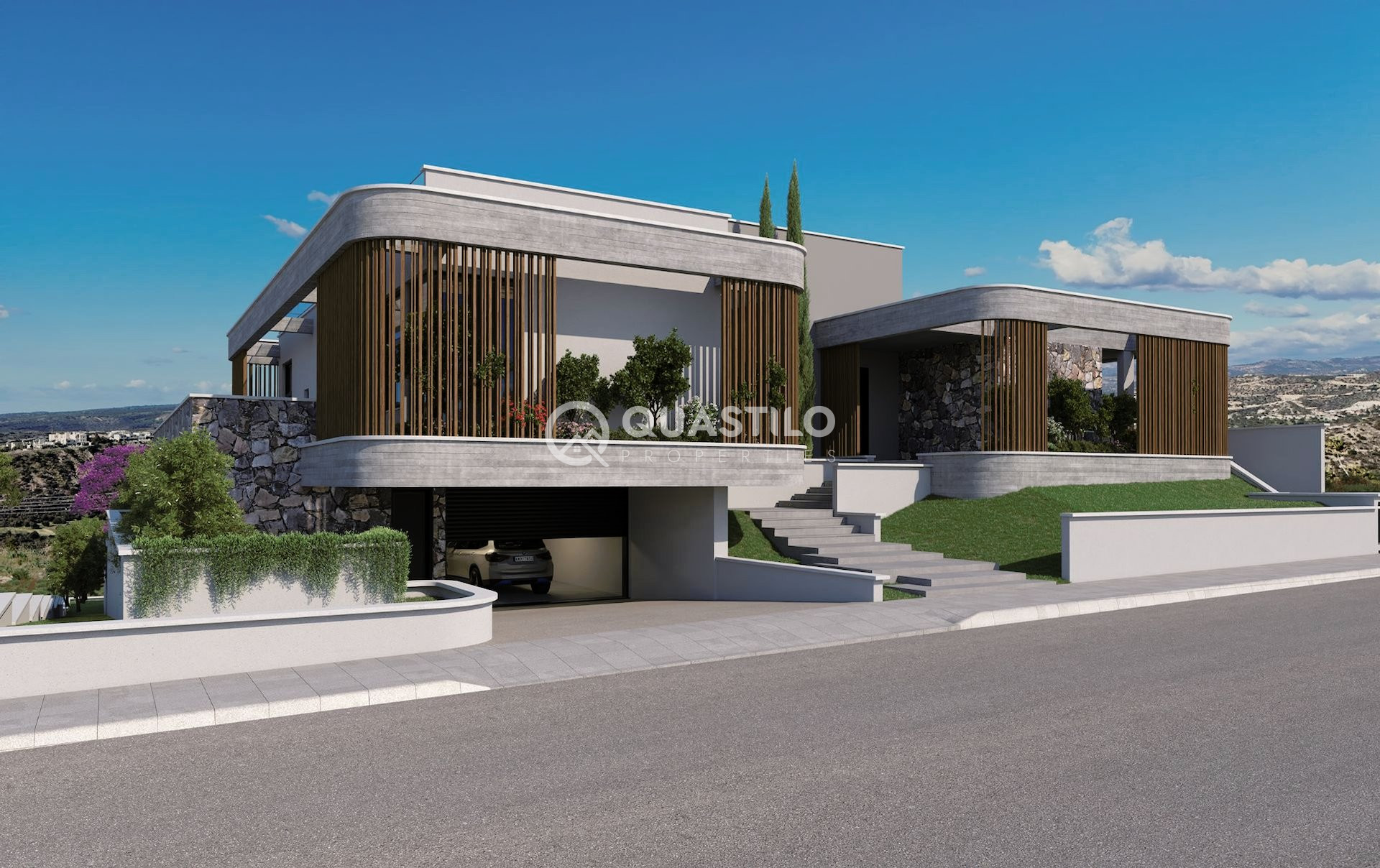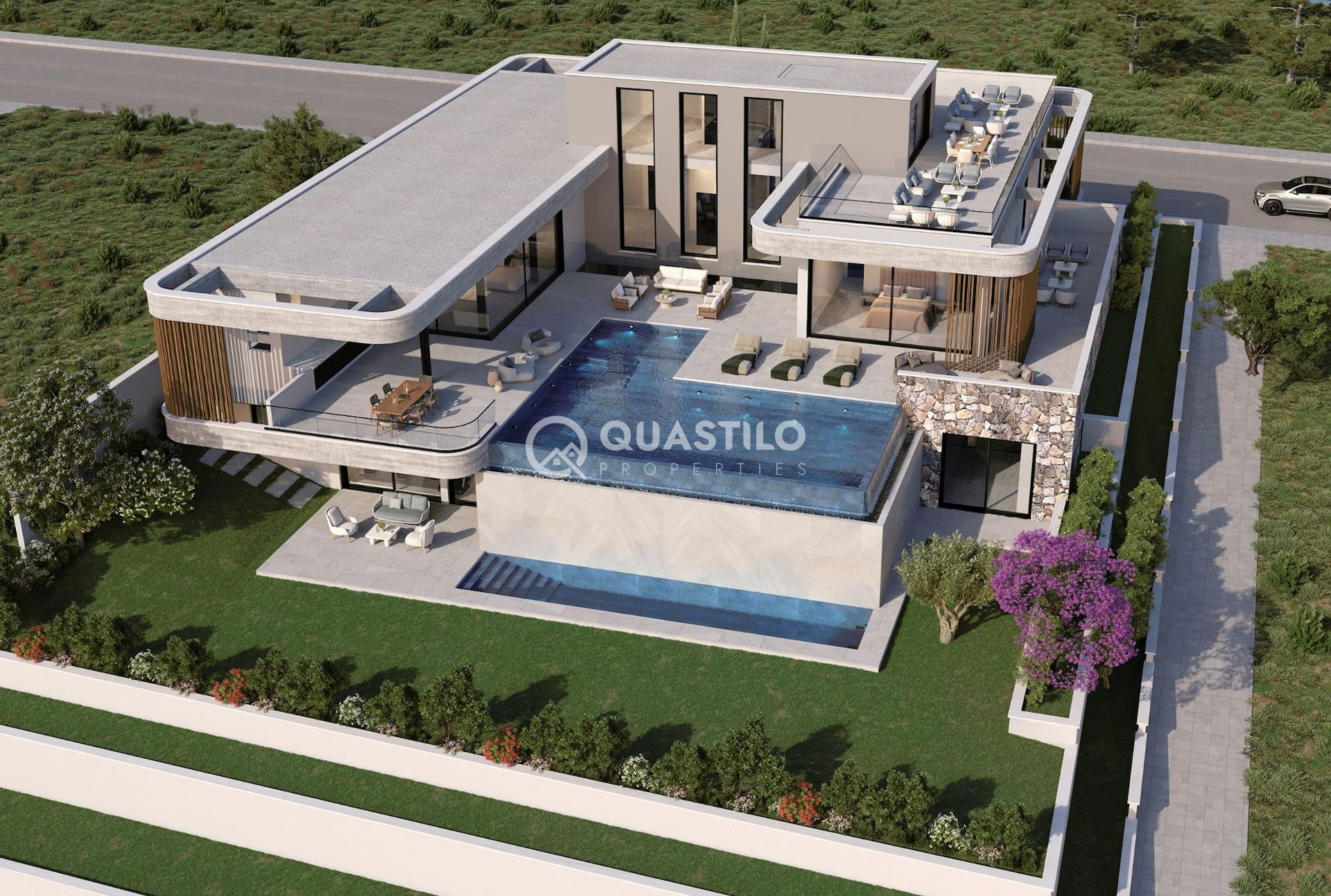 A luxurious villa with panoramic views of Limassol. This 4-bedroom 5-bathroom villa sits on a generously sized plot of 1622m² with fascinating views to the mountains. It is set at a very quiet neighborhood which consists of modern luxury villas and nature in the prestigious suburb of Limassol, Opalia Hills, just 10 minutes away from the city and 15 minutes from a selection of beautiful beaches. The villa includes 3 floors connected with an elegant staircase and lift. The lower floor includes many features and consist of maids room, 3 parking spaces, office with access to garden, pet spa, home cinema, cellar, lounge area, sauna and gym with access to the garden and swimming pool. The open plan ground floor consist of a modern spacious living room, dining area, kitchen, kitchenette, guest toilet and 3 grand bedrooms with an en-suit bathrooms. The upper floor consist of a large size bedroom and access to the roof garden where is the perfect place to enjoy the spectacular mountain and sea views. Superb property with undeniable charm. Don’t miss the opportunity to own this stunning home.