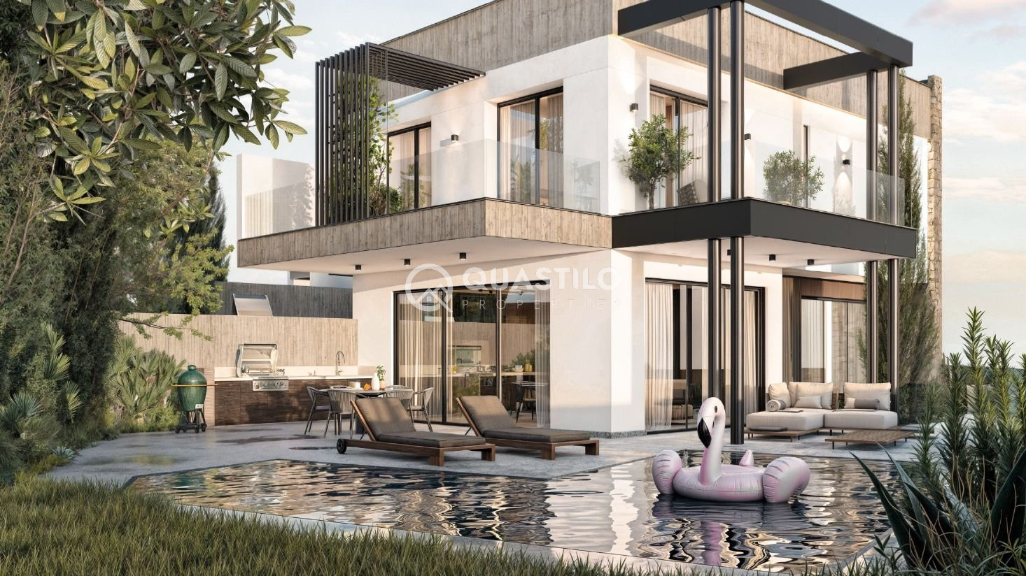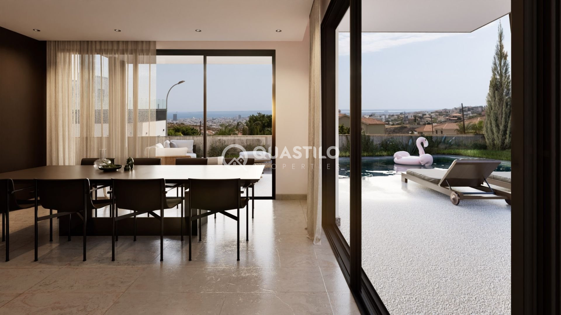 Discover a unique development of three luxury villas at a superb location with amazing sea views, offering a serene living experience. Each villa is meticulously designed to max-imise comfort, functionality, efficiency and appearance. The living spaces are designed as an open-plan space, connected to large covered balconies and designated gardens covering a large portion of the allocated plots. Featuring floor to ceiling windows to soak in the sea views, large swimming pools, barbeque area, spacious bedrooms and large wardrobes. Designed to the high-est quality standards and rated as "A+" class” energy efficient villas, with the use of photovoltaic panels, in-sulation throughout, electric car chargers provisions, energy-efficient appliances, and other sustainable fea-tures that help to minimize the environmental impact and lower energy costs for residents. Agios Athanasios is known for its peaceful environment and welcoming community. Residents enjoy the perfect blend of residential tranquility while being just a short drive away from vibrant city life. The area boasts a variety of amenities, including shops, restaurants, and schools, making it an ideal choice for families and individuals alike. This exceptional property also includes a private swimming pool, perfect for relaxing and enjoying the warm climate. The design of the home allows for flexible living spaces, ideal for entertaining or unwinding after a busy day. Don't miss out on this fantastic opportunity to make this dream home your own. For more information, please contact Quastilo, your trusted partner in finding the perfect property.