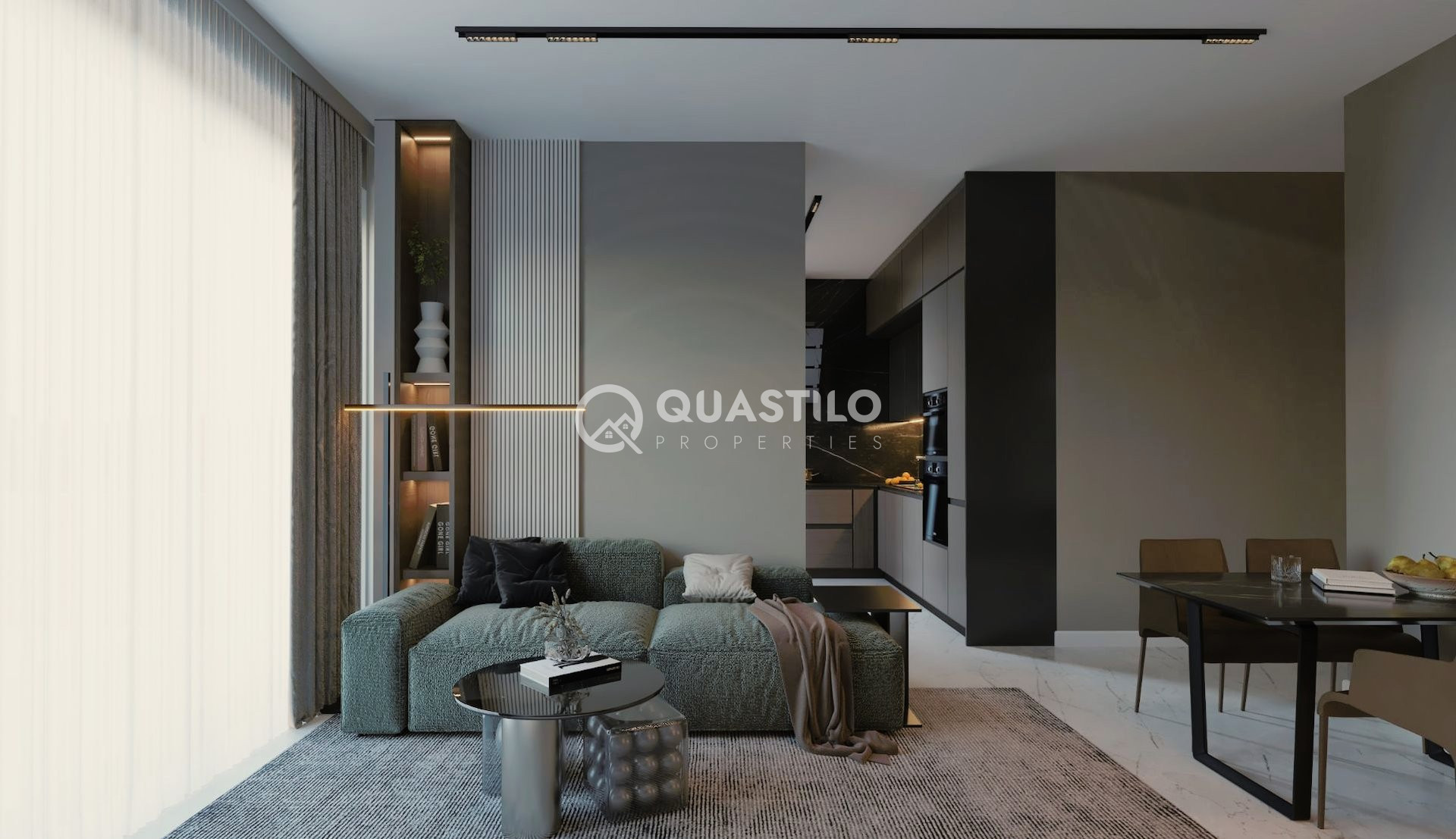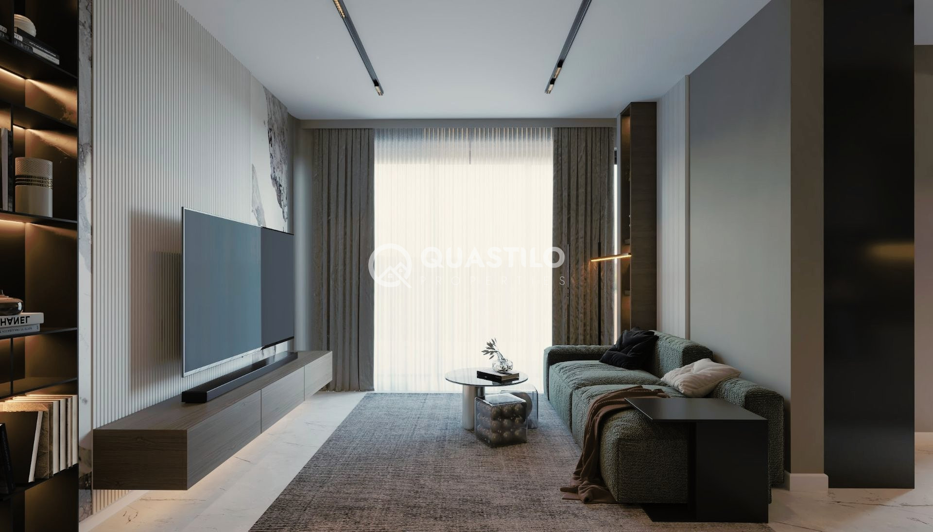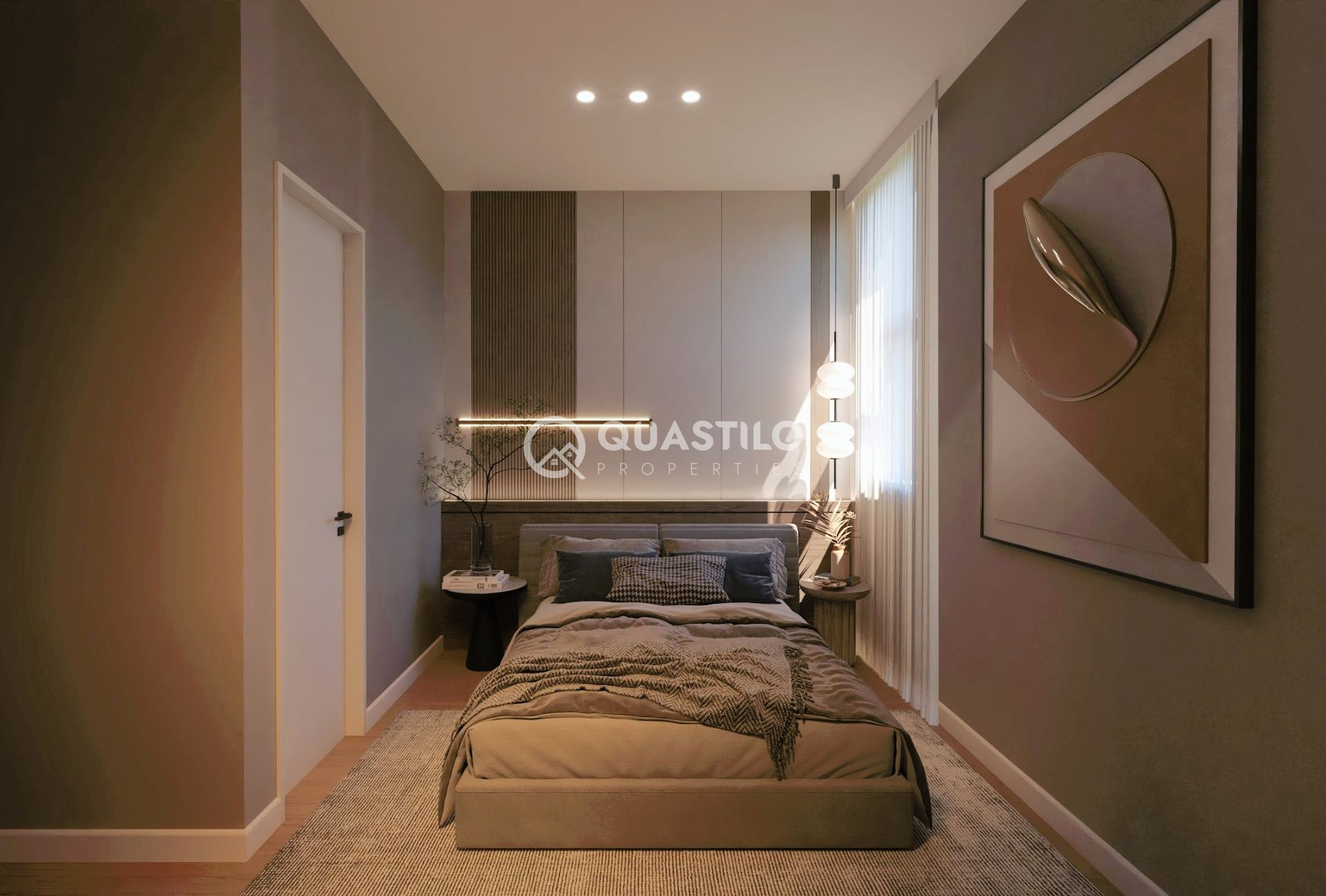 The entrance hall, living and dining area, kitchen, corridors, bathrooms, and terraces will be paved with ceramic tiles of a 120X60 pcs. The bedrooms will be paved with deluxe quality laminated wood parquet