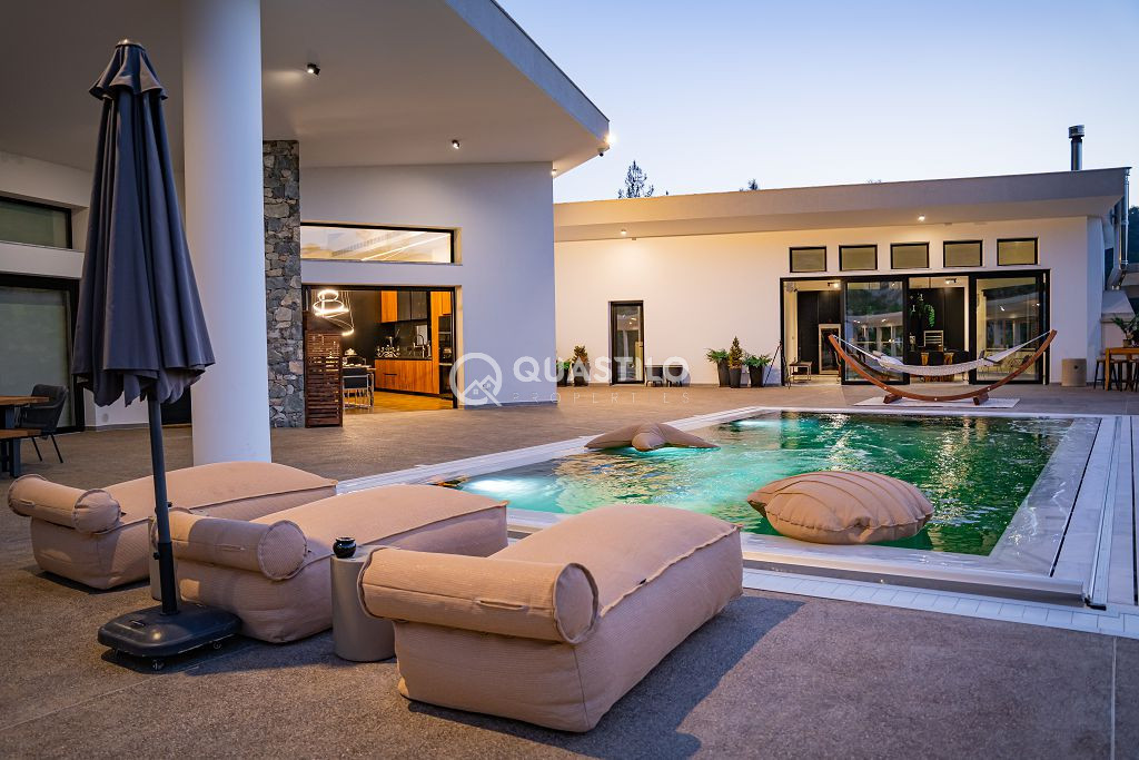 Exclusivity and quality in a modern contemporary design in natural surroundings of spectacular beauty. Mountains behind serve as the perfect back drop, proximity to local amenities, truly a privileged location, this unique residence perfectly combines luxury with the serenity of nature.