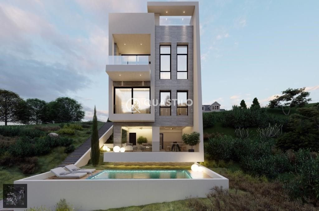 The house is equipped with the latest features, including a central AC system and underfloor heating, ensuring year-round comfort. Imagine relaxing in your private swimming pool with after a long day or with friends and your loved ones. The property boasts impressive views from the top floor, of the city and the sea, offering a serene and attractive atmosphere.
